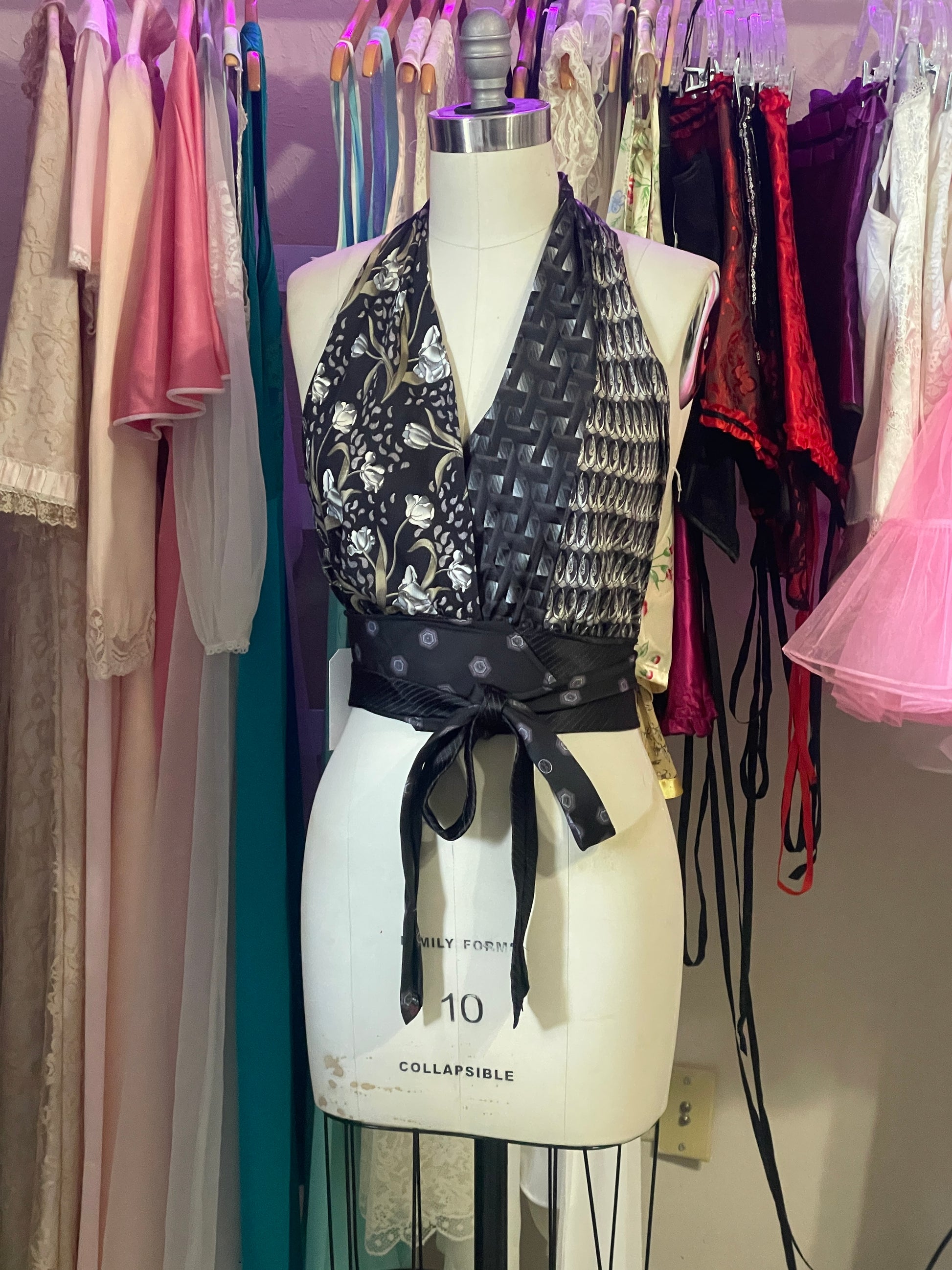 Top made from six vintage neck ties. Each un-repeated can be styled multiple ways fits most